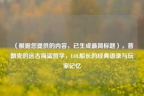 在《英雄联盟》(LOL)的漫长历史中,海洋之灾·普朗克(Gangplank)以其狂野的海盗形象和标志性的台词,成为玩家心中难以磨灭的角色,尤其是早期版本的船长,台词中混杂着粗粝的幽默、威胁与生存智慧,完美契合他“比尔吉沃特暴君”的人设,让我们回溯那些“远古时期”的船长语录,重温这些声音背后的游戏记忆与文化符号。