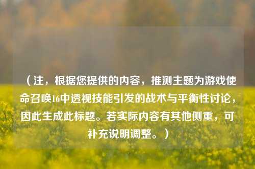 《使命召唤16》引入的"免疫雷达"技能引发玩家对战术平衡性的争议,该技能允许玩家在击杀敌人后短暂获得透视能力,虽能提升战术主动性,却被部分玩家质疑破坏公平性,支持者认为其高风险高回报的设计(需连续击杀触发)符合竞技逻辑,反对者则指出透视效果过度强化优势方,尤其对新手玩家形成压制,开发者通过调整持续时间与触发条件寻求平衡,但争议折射出FPS游戏设计的两难:创新机制与公平体验如何兼得?该讨论已超越单一游戏范畴,触及竞技射击游戏的核心设计哲学。