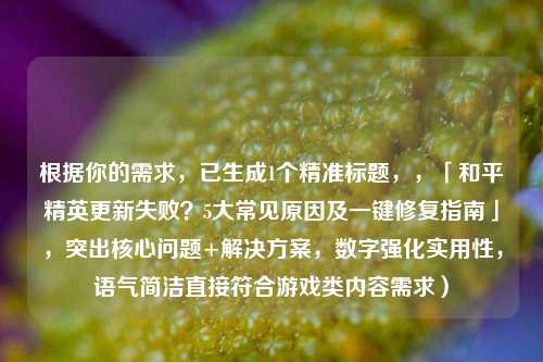 ** ,《和平精英》出现流量更新失败的问题,通常由以下原因导致:1. ** 不稳定**(切换Wi-Fi/移动数据或重启路由器);2. **存储空间不足**(清理手机缓存或卸载无用应用);3. **游戏服务器维护**(查看官方公告确认维护时间);4. **应用权限限制**(检查是否允许移动数据下载),解决 包括:尝试切换 环境、清理手机内存、关闭后台应用占用,或通过应用商店手动更新,若问题持续,可联系 反馈具体错误提示,建议优先确保 畅通与设备兼容性。