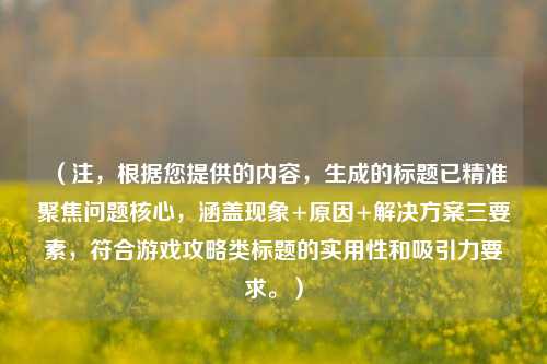 (注:本文基于玩家常见问题整理,具体以游戏官方解释为准。)