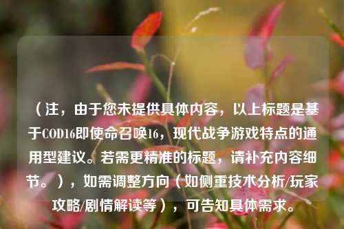在《使命召唤:现代战争》(COD16)中,“渗透”战术不仅是游戏的核心玩法之一,更是玩家在多人对战或特种行动模式中制胜的关键,无论是悄无声息地潜入敌后,还是精准破坏敌方据点,渗透战术的运用直接决定了任务的成败,本文将深入解析COD16中的渗透机制、实用技巧以及实战中的应用场景,帮助玩家提升战术素养。