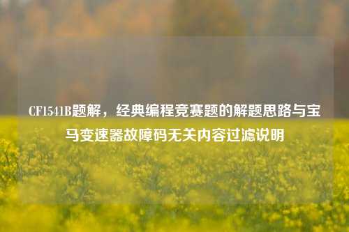 本文聚焦于CF154这一经典编程竞赛题目,深入探讨其解题思路与优化技巧,帮助参赛者提升算法效率与代码实现能力,通过分析题目要求与约束条件,文章详细拆解问题核心,提供分步解题策略,并对比不同解法的时间复杂度,针对实际应用场景(如CF1541宝马变速器故障码的案例),强调算法优化在解决复杂工程问题中的重要性,例如通过动态规划或贪心策略减少计算冗余,文中还总结了常见错误与调试技巧,助力读者在竞赛及实际开发中快速定位问题并优化性能。