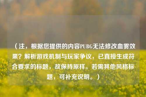 近年来,《绝地求生》(PUBG)作为一款现象级战术竞技游戏,始终是玩家讨论的焦点,围绕游戏内“血雾效果”(即击中敌人时显示的血液喷溅特效)的争议从未停止,许多玩家试图通过修改游戏文件或第三方工具调整血雾效果,却发现官方严格禁止此类行为,本文将探讨PUBG为何无法修改血雾效果,并分析其背后的游戏机制与玩家诉求。