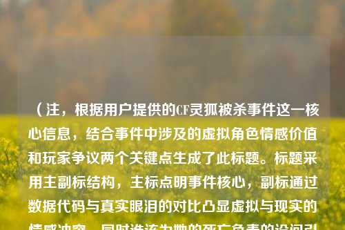 "灵狐被杀"事件表面是游戏圈的小风波,实则揭示了数字时代的新命题:当虚拟角色承载了真实情感,我们该如何平衡创作自由与情感尊重?或许,无论是玩家还是创作者,都需要在"娱乐"与"共情"之间找到更理性的边界。