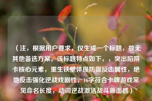 在《逆战》的战场上,没有永恒的强者,只有不断进化的战术,而“重生铁壁”的存在,让每一场战斗都充满变数与***,下一次当你陷入绝境时,不妨握紧这张陷阱卡,或许,它就是你逆天改命的开始。
