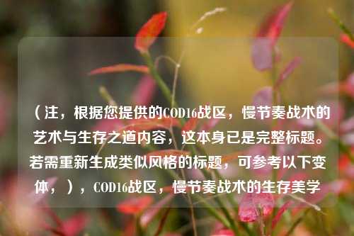 在COD16战区中,"慢"是一种被低估的智慧,它不仅是新手适应战场的缓冲带,更是高手进阶的必修课,通过控制节奏、优化决策,玩家能将看似被动的"慢"转化为主动的胜利筹码,毕竟,战区的终极目标不是击杀数,而是成为最后的幸存者——而生存,往往需要一颗冷静的头脑。