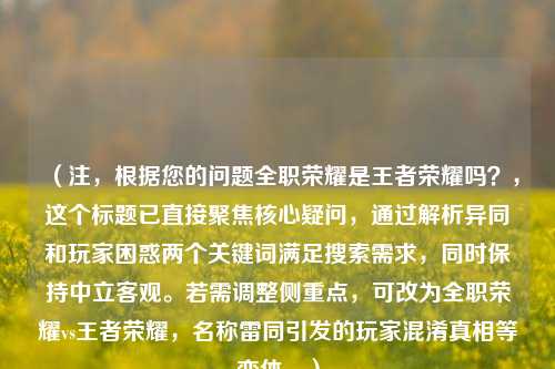 《 *** 荣耀》并非《王者荣耀》,而是两款不同的游戏,但名称相似常引发玩家混淆。《王者荣耀》是腾讯旗下知名的5V5MOBA手游,主打竞技对战与英雄养成;而《 *** 荣耀》则可能为其他厂商开发的同类型或衍生作品,具体玩法需根据实际版本确认(若存在),两者核心差异可能体现在世界观、角色设定或运营模式上,王者荣耀》依托历史/神话IP,《 *** 荣耀》若存在或偏向原创题材,玩家需注意区分名称细节,避免下载错误或误解游戏内容,建议通过官方渠道核实游戏信息,确保体验目标作品。