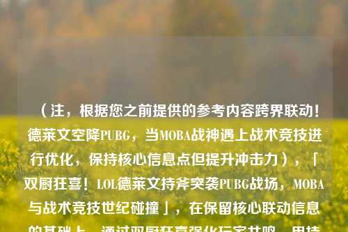 在游戏圈,跨界联动总能引爆玩家热情,一则劲爆消息席卷全球电竞社区——《英雄联盟》的招牌英雄“荣耀行刑官·德莱文”竟以特殊方式“空降”《绝地求生》(PUBG)!这一打破次元壁的联动,究竟是限时彩蛋,还是全新玩法的前奏?让我们一探究竟。