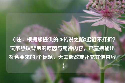 《穿越火线》(CF)的玩家社区中,传说之路3”活动迟迟未推出折扣的讨论愈发热烈,作为CF长期运营的经典付费活动,“传说之路”系列一直以高性价比的皮肤、武器和角色奖励吸引玩家参与,传说之路3上线已有一段时间,官方却始终未像前两季那样推出限时折扣,这一现象引发了玩家的广泛猜测和不满。
