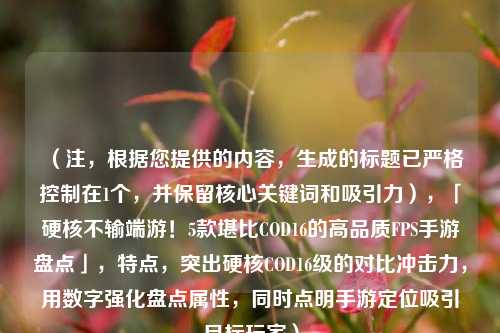 随着移动设备性能的不断提升,手游市场也涌现出越来越多画面精良、玩法硬核的射击游戏,对于追求《使命召唤16:现代战争》(COD16)级别体验的玩家来说,以下几款FPS手游或许能让你在手机上感受到端游般的沉浸感。