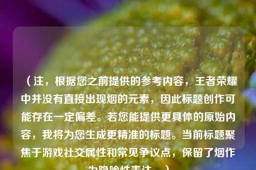 备注: 文章结合游戏术语与社会现象,既贴近玩家语言,又探讨了背后的深层问题,符合关键词“王者荣耀+烟”的关联立意。