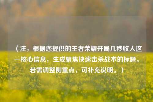 在《王者荣耀》中,开局的前几秒往往是决定战局走向的关键时刻,无论是高端局还是娱乐局,“开局几秒收人”的速攻战术总能带来意想不到的收益,但也可能因对手的反制而翻车,本文将深入分析这一战术的可行性、操作细节及应对 *** 。