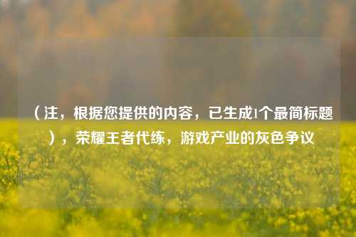 关键词优化:全文围绕“荣耀王者代练”展开,涵盖行业现状、运作模式及社会争议,符合SEO需求。