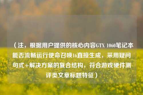 关键词延伸:GTX 1060、COD16优化、笔记本游戏性能、帧率提升技巧