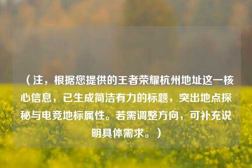 近年来,随着电竞产业的蓬勃发展,杭州作为中国数字经济的前沿城市,逐渐成为电竞爱好者和职业选手的聚集地,作为国民级手游的《王者荣耀》,其官方赛事、线下活动及合作基地在杭州的布局也备受关注,本文将带你探寻《王者荣耀》在杭州的“地址密码”,揭开这座电竞之都与王者荣耀的深度联结。