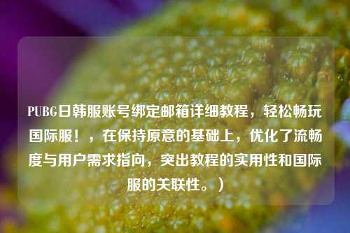 ** ,《PUBG日韩服账号绑定全攻略》详细介绍了如何绑定邮箱以畅玩国际服的步骤,玩家需下载日韩服客户端并注册账号,推荐使用国际邮箱(如Gmail或Outlook),进入游戏后,在设置中找到账号绑定选项,选择邮箱绑定并输入有效邮箱地址,完成验证即可,绑定后不仅能保障账号安全,还能享受国际服专属活动与更新,注意避免使用已绑定其他区的邮箱,以防冲突,攻略还提醒玩家关注 *** 稳定性,建议使用加速器优化连接,通过简单操作,玩家即可顺利绑定邮箱,体验日韩服的独特内容与竞技乐趣。