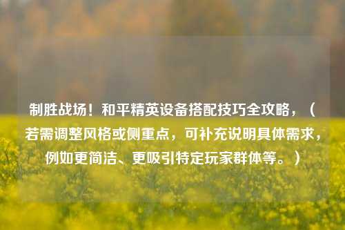 在《和平精英》中,除了操作技术和战术意识外,设备的合理搭配也能显著提升游戏体验和胜率,无论是手机、耳机还是外设,选择适合的装备可以让玩家更快发现敌人、精准操控,甚至减少疲劳感,本文将为你详细解析《和平精英》的设备搭配技巧,助你成为战场上的“装备达人”!