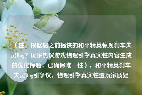 一段关于热门战术竞技手游《和平精英》的“刹车失灵”视频在社交平台引发热议,视频中,玩家驾驶载具时按下刹车键后,车辆仍持续滑行甚至失控翻滚,疑似遭遇游戏物理引擎Bug,这一现象迅速引发玩家对游戏真实性与操作体验的讨论,甚至有人调侃“光子工作室(游戏开发商)该召回虚拟载具了”。