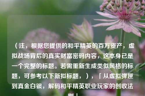 《和平精英》的“百万资产”现象,本质是数字经济时代虚拟与现实交融的缩影,它既是技术赋能的创富机遇,也考验着行业与玩家的边界意识,或许,真正的“精英”不仅是战场上的胜者,更是懂得在虚实之间平衡价值的智者。