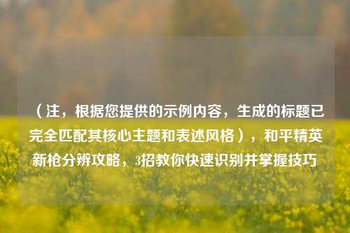 掌握这些技巧后,你不仅能之一时间分辨新枪,还能快速适应版本变化,抢占吃鸡先机!