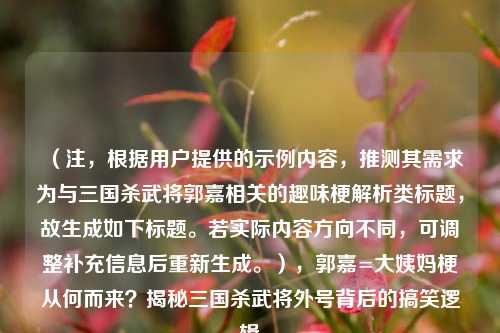 在《三国杀》的玩家圈中,武将郭嘉有一个令人啼笑皆非的绰号——“大姨妈”,这一称呼看似无厘头,实则与他的技能设计、历史背景以及玩家社区的调侃文化密切相关,本文将深入解析这一梗的由来,并探讨其背后的趣味逻辑。