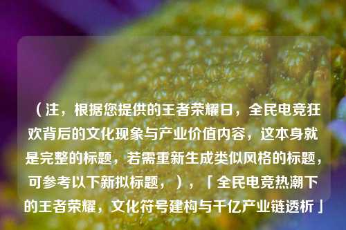 每年的王者荣耀日,不仅是游戏玩家的狂欢盛宴,更成为观察中国移动电竞发展的一扇窗口,作为国民级MOBA手游,《王者荣耀》凭借其社交属性、竞技魅力与文化渗透力,逐渐从一款游戏演变为一种现象级的文化符号,在“王者荣耀日”这一特殊节点,我们得以重新审视其背后的社会影响与产业价值。